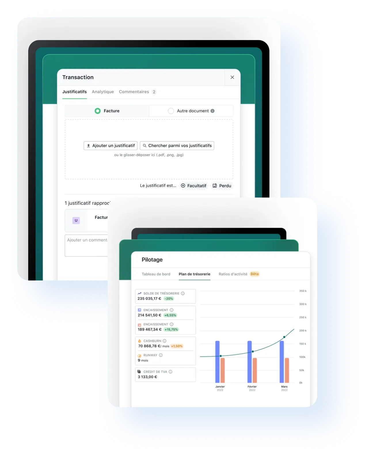 Un outil unique qui rassemble vos finances, votre comptabilité et votre compte professionnel.
