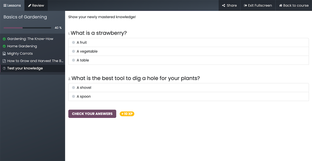 Suivez les progrès des participants grâce à des évaluations et des certifications. Cela responsabilise les étudiants en leur offrant un retour d’information précieux et en validant leurs connaissances et compétences acquises.