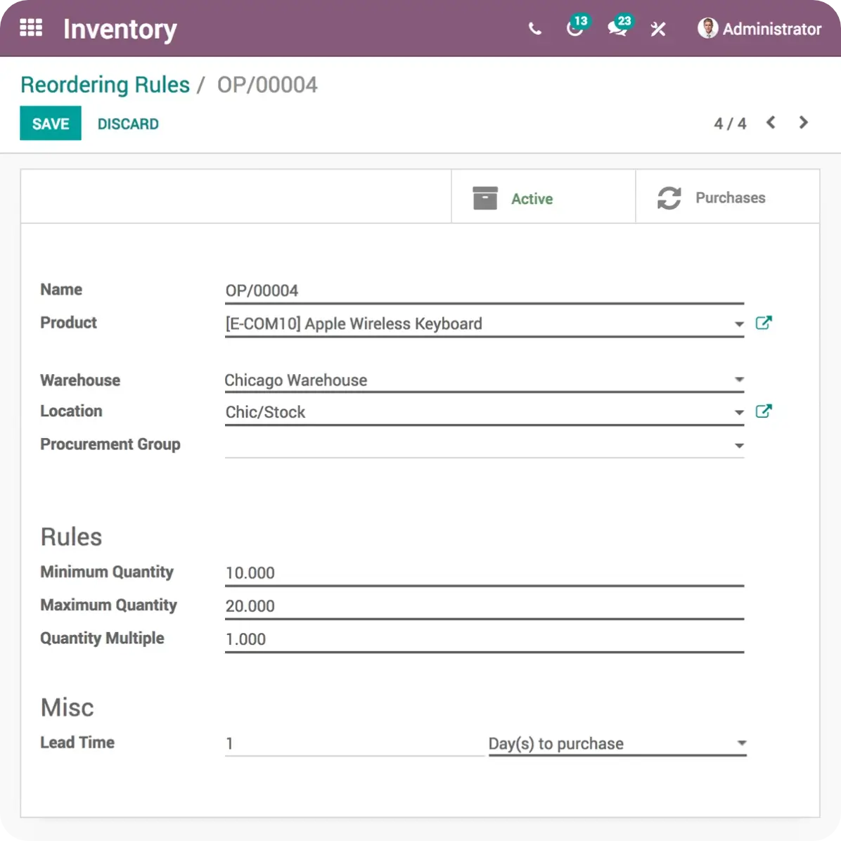 Bénéficiez d’un suivi précis de chaque mouvement de stock grâce au système d’inventaire à double entrée d’Odoo.Suivez de près tous les mouvements de stock, du moment de l’achat jusqu’au bon de commande, en passant par l’entrepôt.Traquez les numéros de série ou de lot en amont ou en aval, à n’importe quel point de votre chaîne d’approvisionnement.
