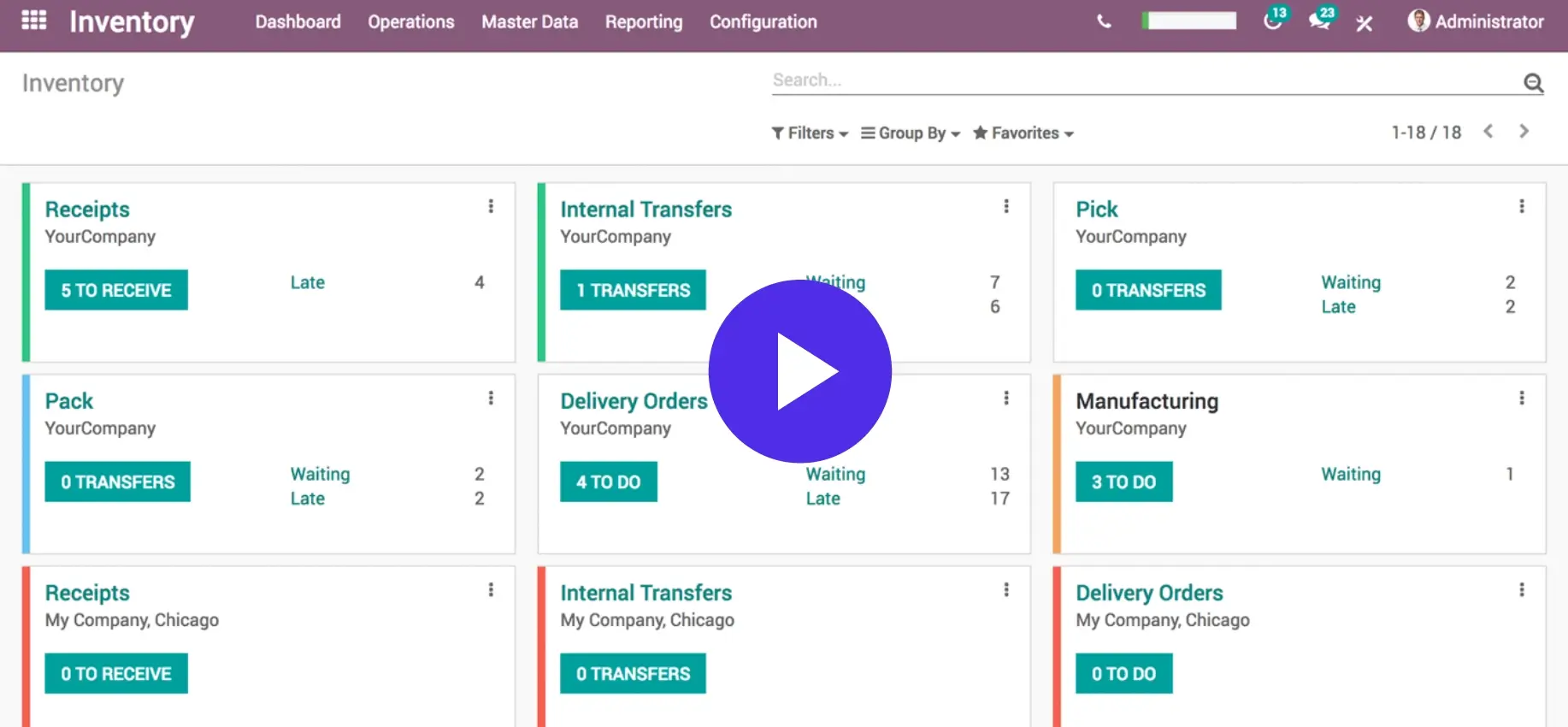 Améliorez l’efficacité de toutes vos opérations internes en optimisant votre méthode de stockage. Avec l’inventaire à double entrée d’Odoo, les stocks ne sont ni entrés, sortis ni transformés. Au lieu de cela, ces opérations se traduisent par des mouvements de stock entre les emplacements disponibles.
